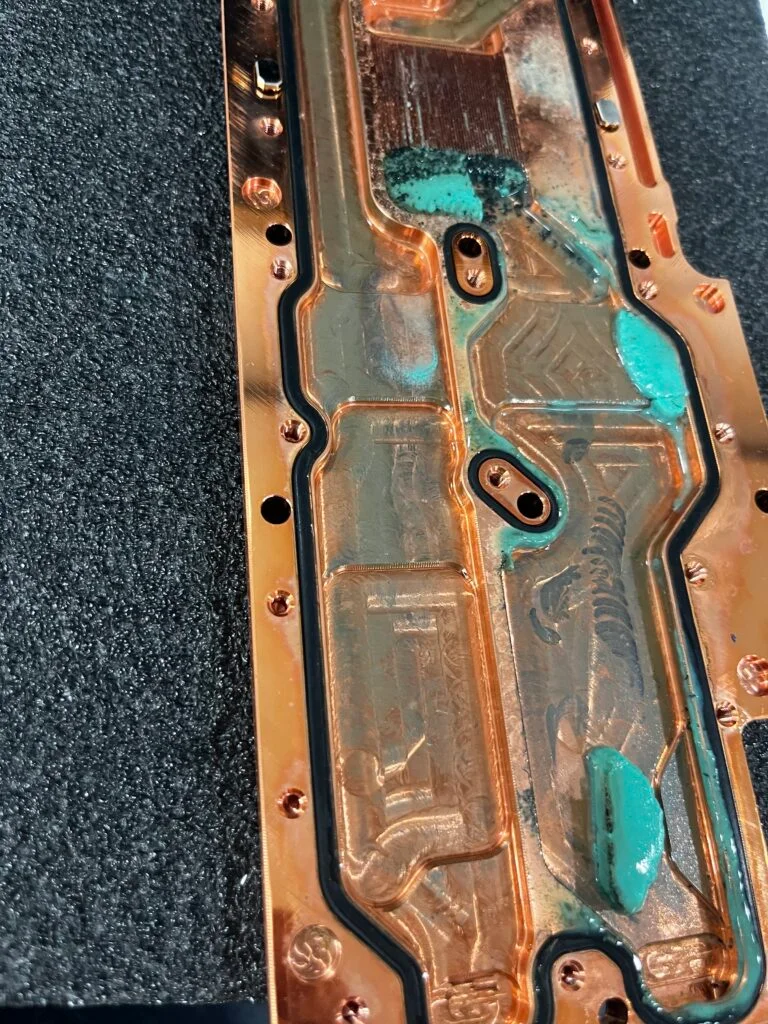 다만 이물질로 인해서 미세수로가 막혀버린다면, 냉각수가 제대로 순환하지 못해 GPU의 발열이 충분히 해소되지 못하고 온도가 급상승하게 됩니다. 결국 쓰로틀링(성능 저하), 시스템 셧다운, 심할 경우 하드웨어 손상으로 이어질 수 있습니다.
