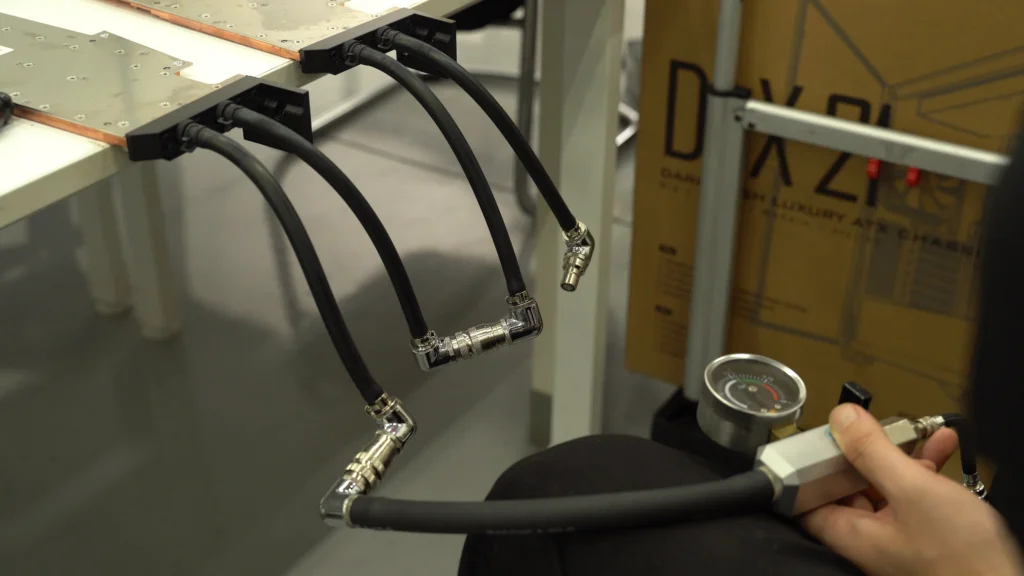 깨끗하게 세척 된 워터블럭이라 해도, 기존 GPU 워터블럭의 오링(O-ring)이 노후화되어 제 기능을 하지 못하는 경우가 종종 발생합니다. 이에 따라 각 제품별로 공기압을 이용한 누수 테스트를 진행해 워터블럭의 상태를 꼼꼼히 점검한 후 장착합니다.