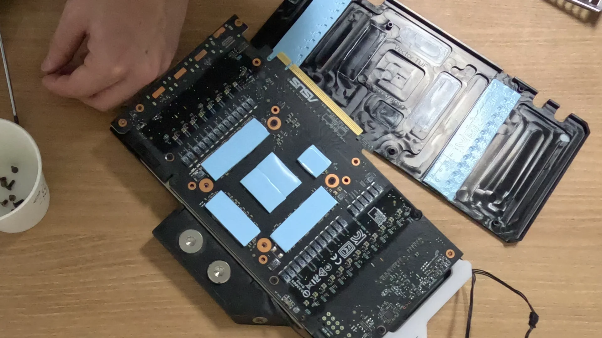 우선 기존 3090 TUF의 경우에는 깔끔하게 기존 써멀패드를 제거 한 후에, 새로운 써멀 패드로 교체를 진행해주었습니다.