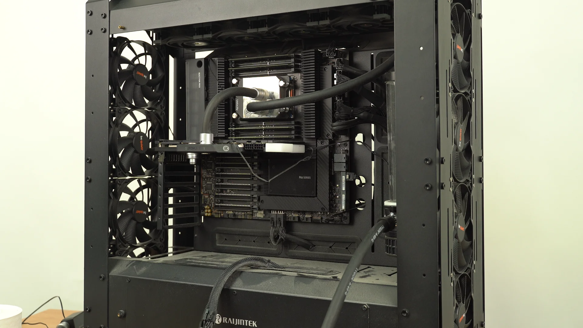 기존 사용하시던 제품의 사양은 케이스는 레진텍사의 eris evo 케이스이고, CPU는 쓰레드리퍼 3975WX, 메모리는 128GB 파워는 1300W, 그래픽카드는 RTX 3090 TUF 모델에 수냉 블럭이 장착되어 있습니다.